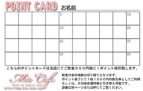 特典 500円ごとに1ポイント 40ポイントで1000円引き (大阪店の場合、新人だとポイント2倍のため、500円ごとに2ポイントです)