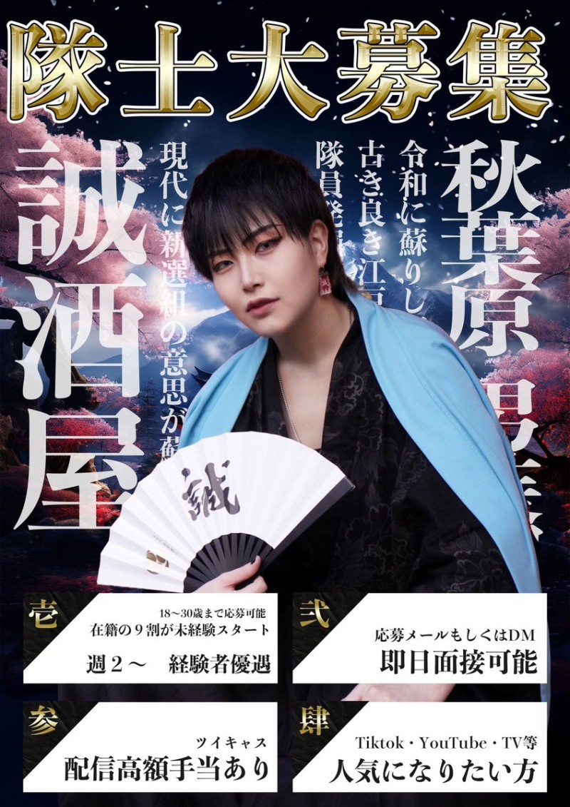 🔹男装募集🔹 誠酒屋の"新人隊士"を募集します🏯🌕 経験がある方、移籍も歓迎します🇯🇵 【在籍の9割が🔰未経験スタートのお店】 即日、面接OK👌ご応募、詳細はこちらから 👉 https://t.co/xbwZHPL2xP #秋葉原 #男装カフェ #誠酒屋 #男装バイト #コンカフェ求人 #TikTok https://t.co/kNxdf6r3md