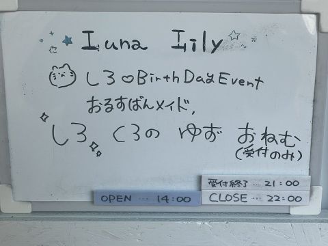 本日11月9日(土)は「しろバースデーイベント」です。 お留守番メイドは、 14時~ しろ、くろの、ゆず、おねむ(受付のみ) です。 皆様のお帰りをお待ちしております。 #ルナリリー #メイドリフレ #メイド #大阪日本橋 https://t.co/y718iIjZ92