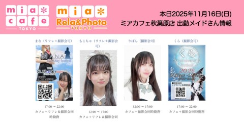 👑本日11月16日(日)のミアカフェ秋葉原店