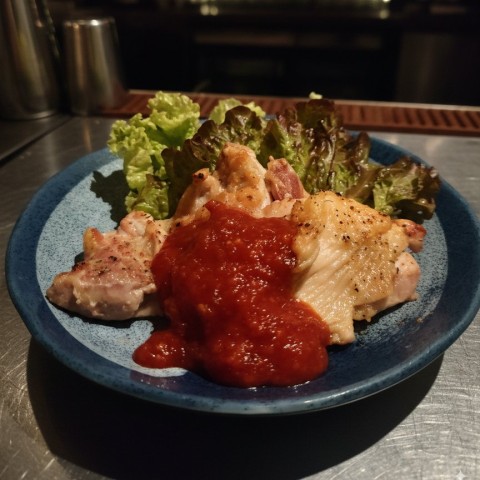オヌブンでじっくり焌き䞊げたチキンに、濃厚なトマト゜ヌスをたっぷり。 数量限定でご甚意しおいたす